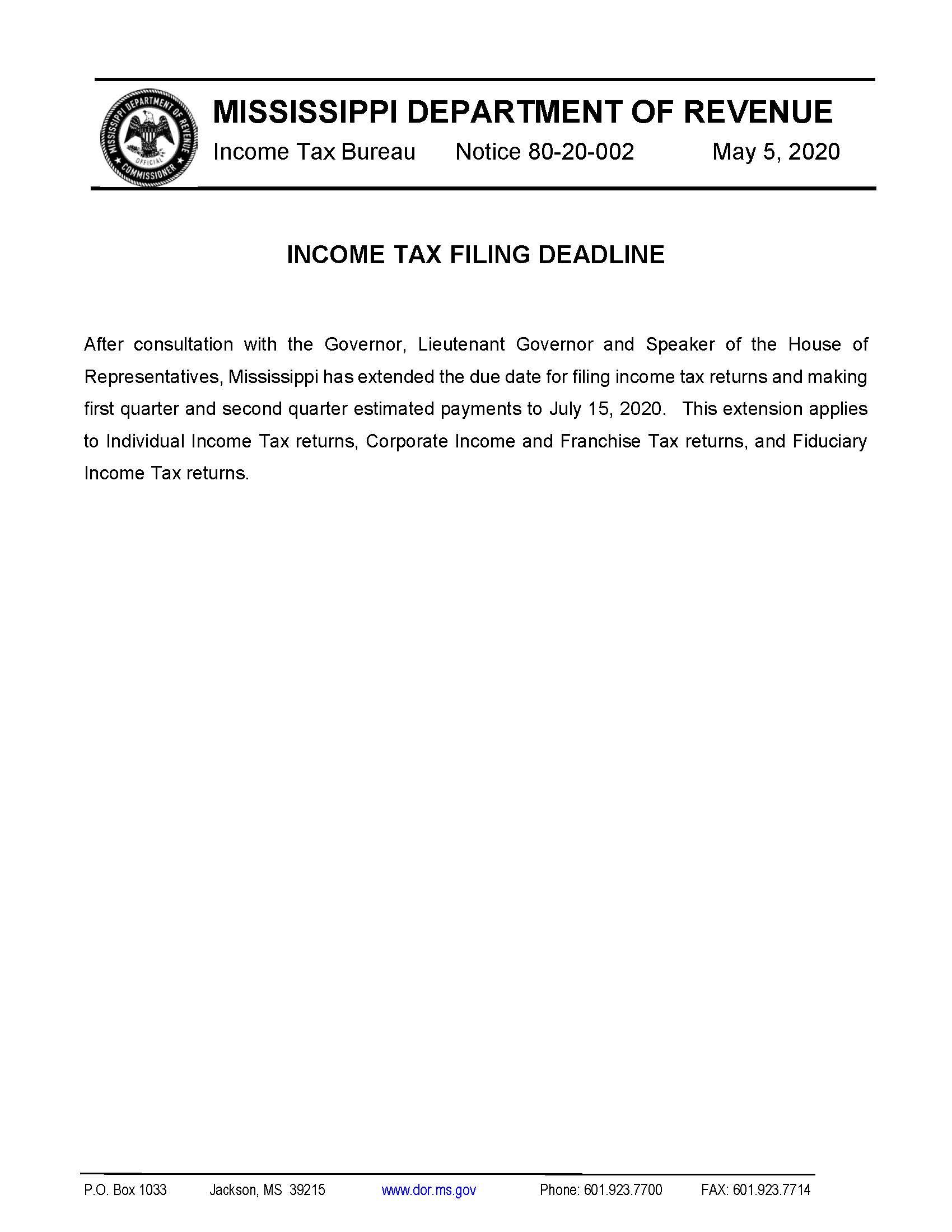 Mississippi Department Of Revenue On Twitter Dor Statement On Income Tax Return Deadline Https T Co Naiwcv9sgv Twitter